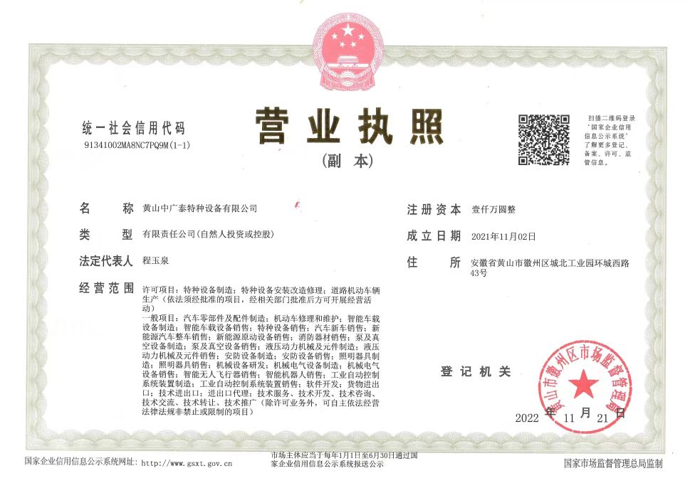 黄山中广泰特种设备有限公司,深耕防灾减灾救灾领域,是一家集特种车辆及设备研发、生产、销售于一体的现代化高新技术企业。公司秉持”专精特新”发展理念,融合智能制造技术,匠心打造安全、高效的应急装备解决方案, 持续为防灾减灾救灾赋能。