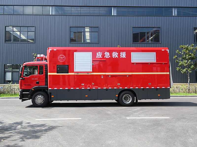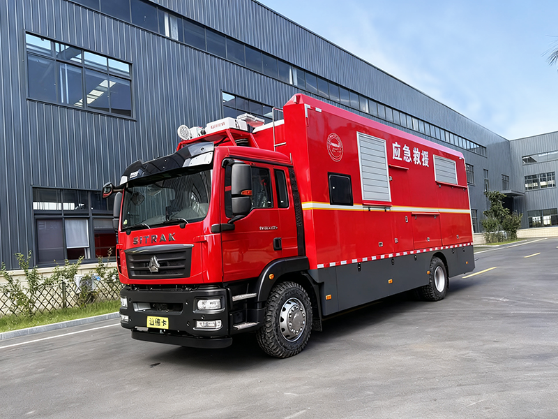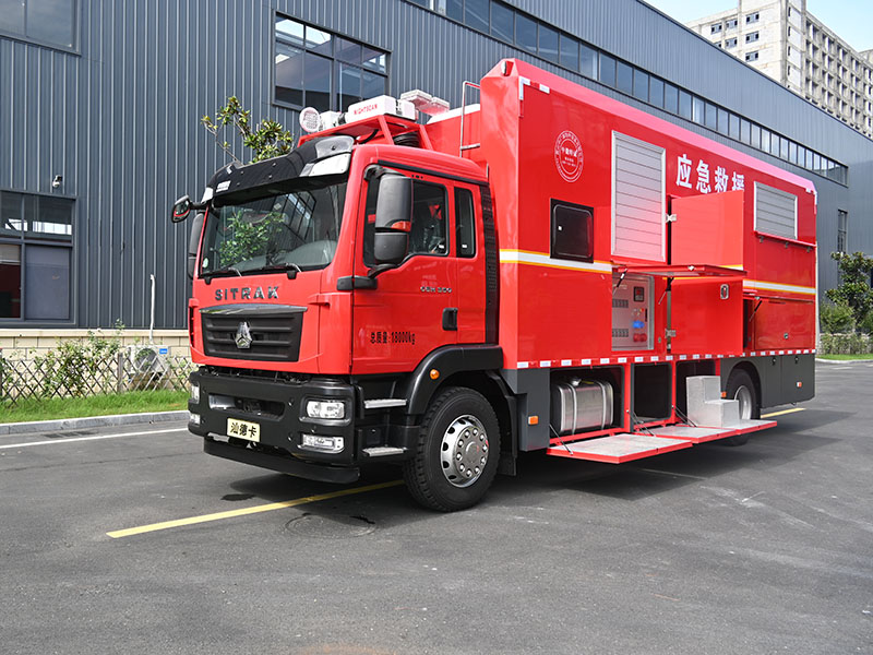 搭载中国重汽柴油发动机,最大功率257kw,排量 6870ml,最高车速 110km/h,动力储备充足,适应长距离机动及复杂路况。底盘配备自动变速箱、气囊主座椅(带通风加热)、四点气囊减震系统,驾驶舒适性显著提升;采用 275/80R22.5 轮胎及大容量油箱,续航能力强劲,满足长时间作业需求。