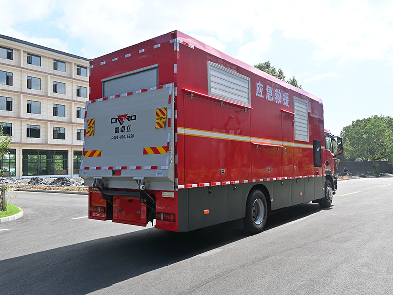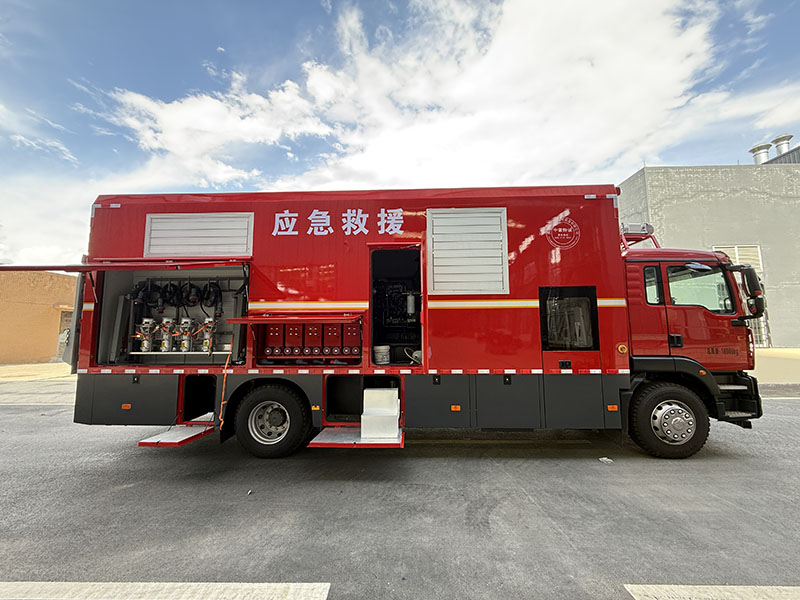 整车配备 ABS 防抱死制动系统、360 度倒车影像及倒车雷达,保障行驶安全;搭载 2 只干粉灭火器、专用接地装置(含 10 米接地线)及防雷系统,水泵具备过压、欠压、过热等自动保护功能;厢体采用防腐蚀耐火材料,具备防雨、防火、防尘性能,适应全天候作业环境。